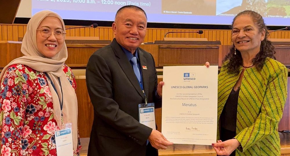 “Hari ini kami berada di Paris, 2 Juni 2025. Kami menerima sertifikat Geopark Meratus dan ada sekitar 16 negara yang menerima, Indonesia ada dua yaitu Geopark Kebumen (Jawa Tengah) dan Geopark Meratus (Kalsel), mudah-mudahan dengan adanya sertifikat UNESCO ini adalah babak pertama nantinya ada PR yang kita laksanakan bersama,” sampai Gubernur Kalsel, H. Muhidin usai kegiatan.