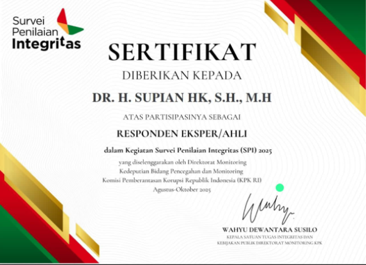 H Supian HK Terima Sertifikat Responden Ahli dari KPK dalam Survei Penilaian Integritas 2025