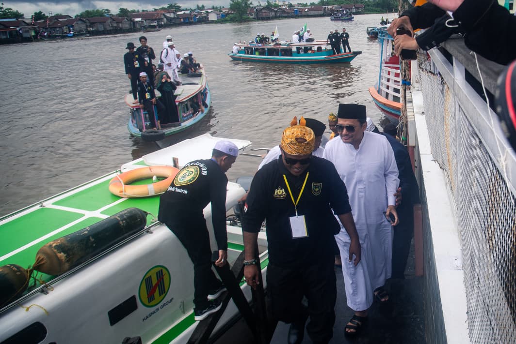 KabarKalimantan, Banjarmasin – Melalui jalur sungai menggunakan kapal klotok, Wakil Gubernur Kalimantan Selatan, Hasnuryadi Sulaiman menghadiri peringatan haul ke 79 Habib Hamid bin Abbas Bahasym atau Habib Basirih, di area kubah Jalan Keramat Basirih Kelurahan Basirih, Kota Banjarmasin, Minggu (9/11/2025)