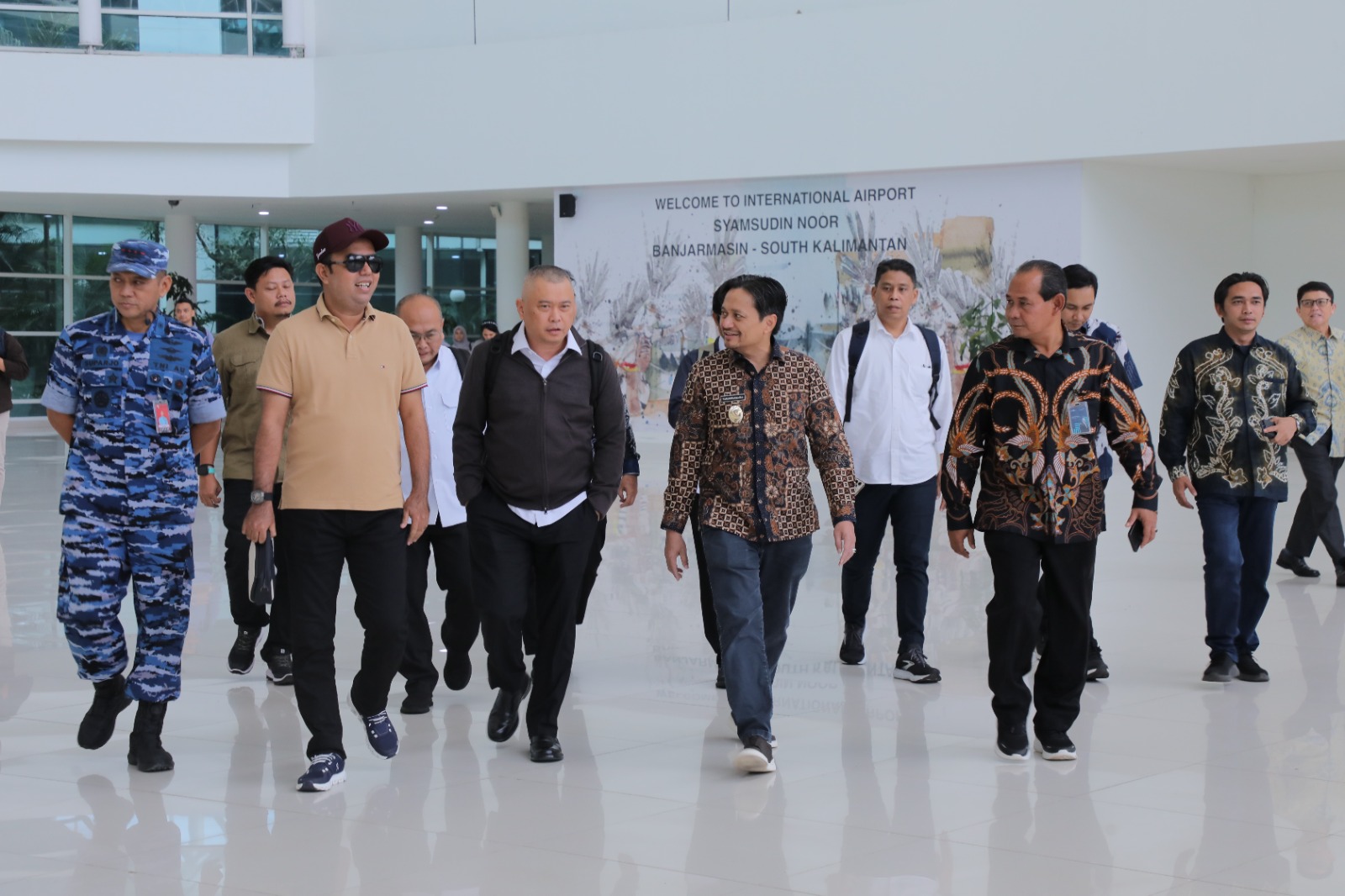 KabarKalimantan, Banjarbaru – Wakil Gubernur Kalimantan Selatan, Hasnuryadi Sulaiman menyambut kedatangan Menteri Perhubungan RI, Dudy Purwagandhi dan Anggota Komisi IX DPR RI di gerbang kedatangan Bandara Internasional Syamsuddin Noor Banjarmasin, Kota Banjarbaru pada Kamis (25/9/2025) pagi.
