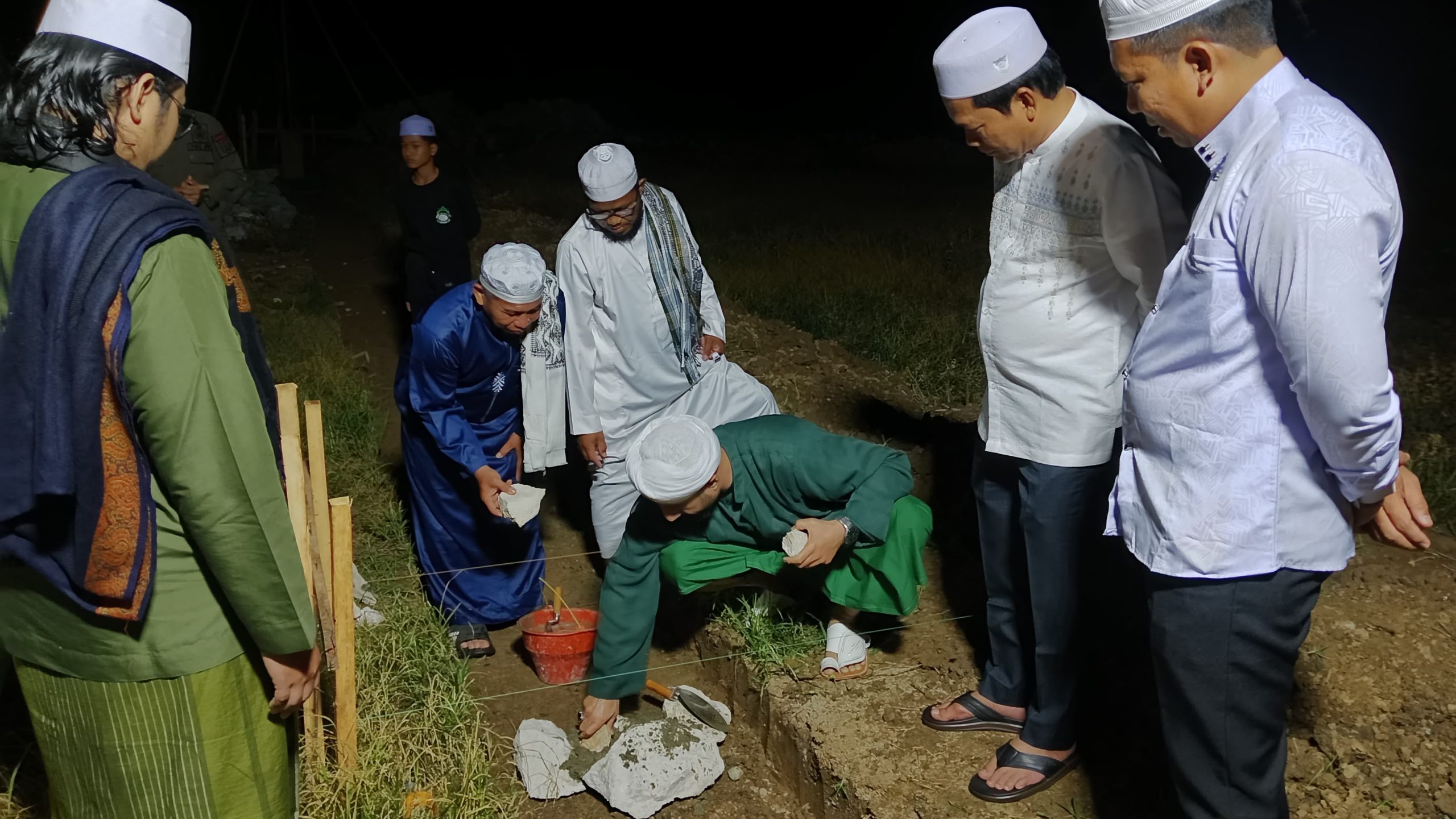 Prosesi simbolis peletakan batu pertama dilakukan oleh Habib Idrus Alydrus di hadapan ratusan jamaah yang hadir.