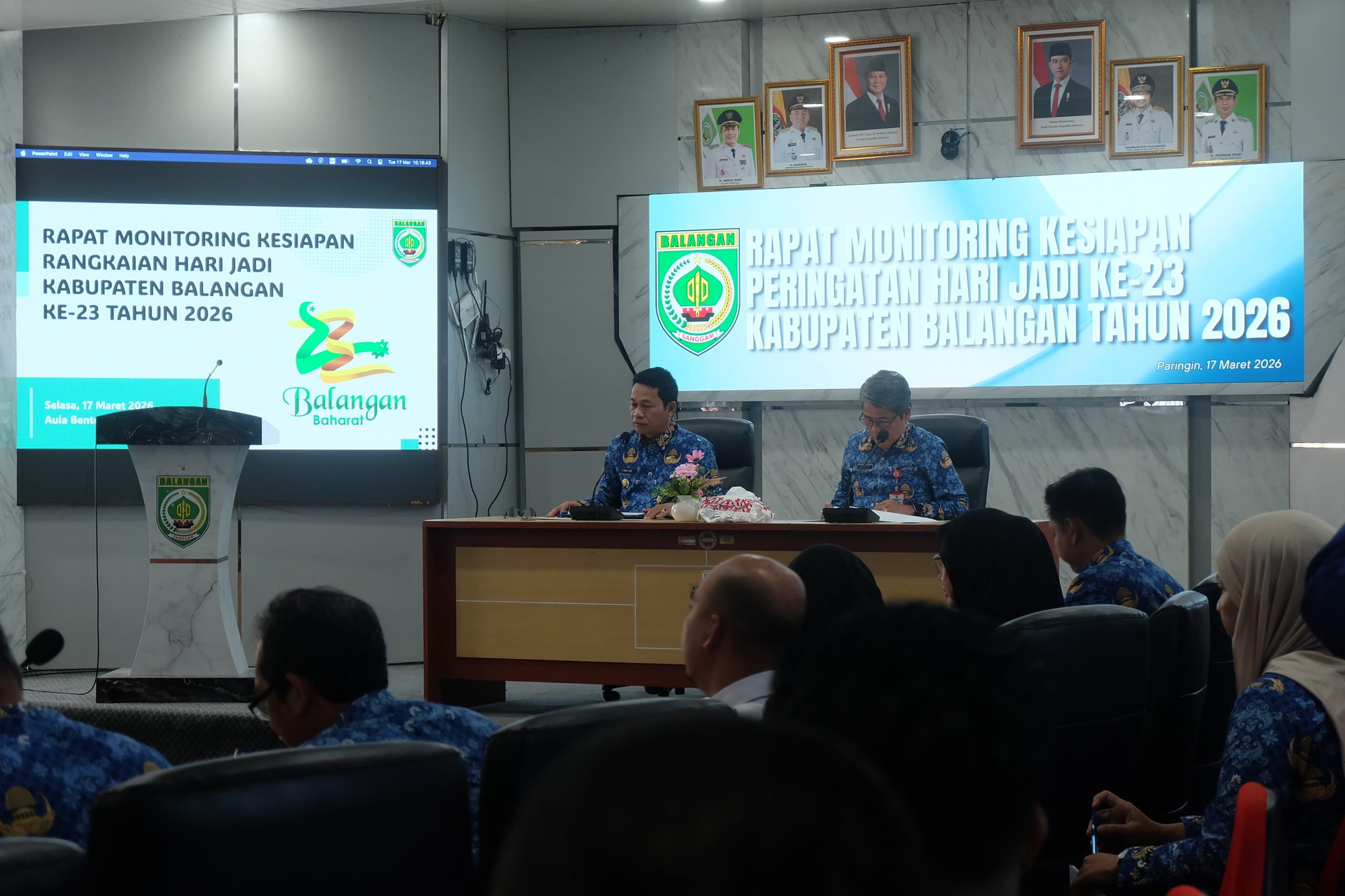 KabarKalimantan, Paringin – Pemerintah Kabupaten Balangan terus memantapkan persiapan menjelang peringatan Hari Jadi ke-23 tahun 2026. Rapat monitoring digelar di Aula Benteng Tundakan, Paringin Selatan, Selasa (17/3/2026), untuk memastikan seluruh persiapan berjalan sesuai rencana.