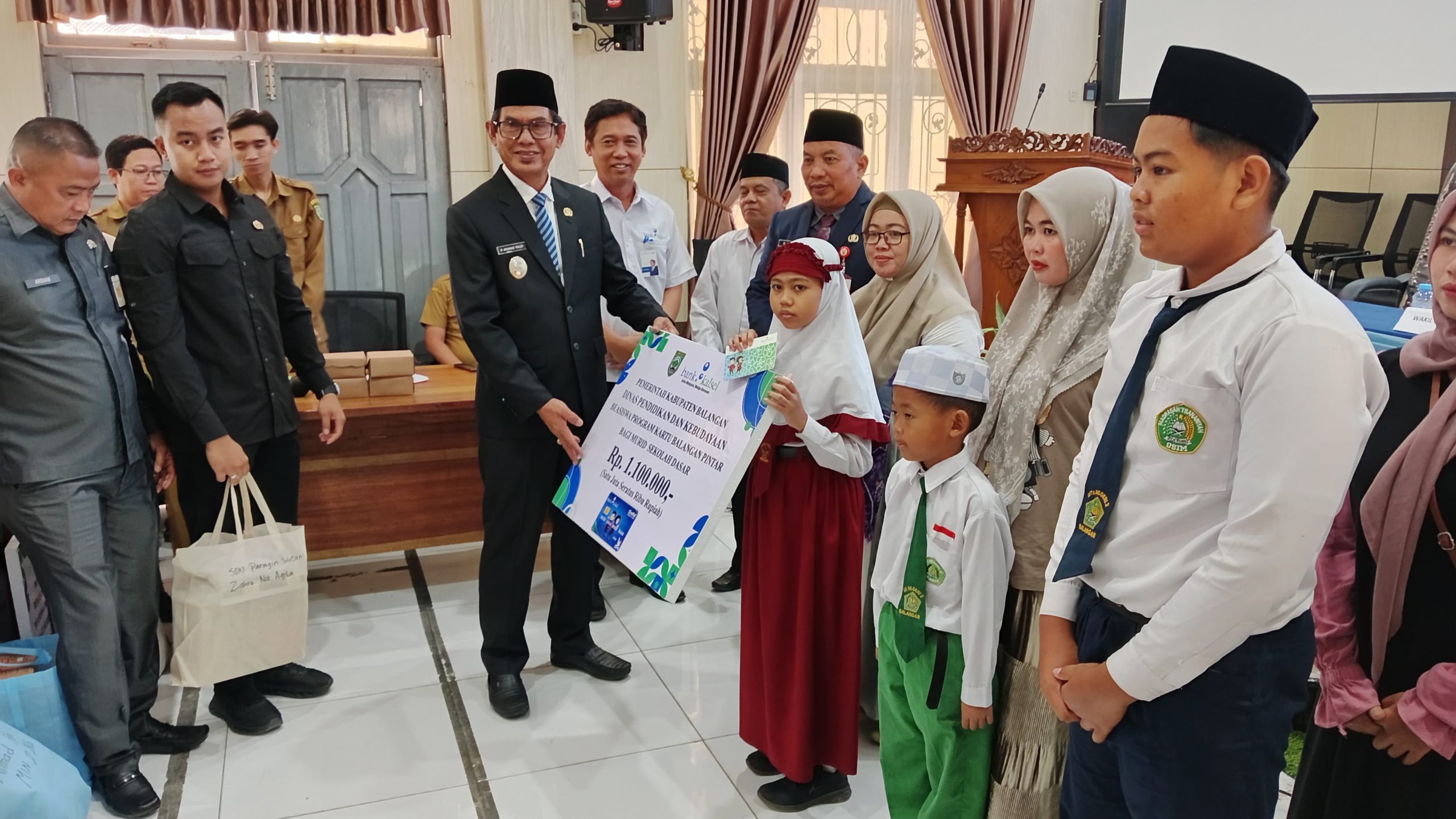 KabarKalimantan, Paringin – Wakil Bupati Balangan, Akhmad Fauzi, menyerahkan Beasiswa Program Kartu Balangan Pintar (KBP) kepada 1.511 pelajar jenjang SD/MI dan SMP/MTs di Aula I Dinas Pendidikan dan Kebudayaan (Disdikbud) Kabupaten Balangan, Paringin Selatan, Senin (26/1/2026).