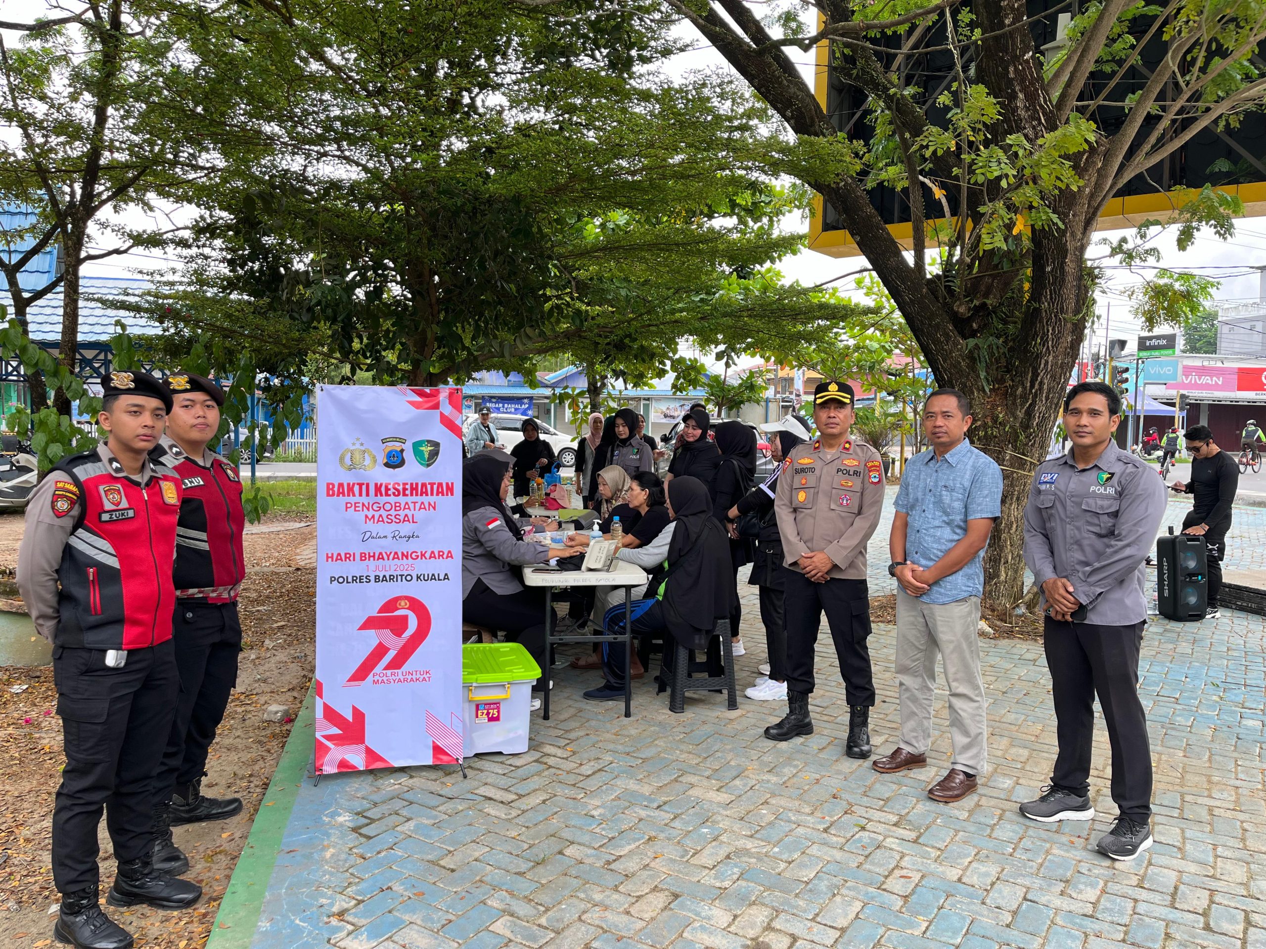 Setelah menggelar bakti Kesehatan di Alalak beberapa hari lalu, Kembali Polres Batola melalui Si Dokes Polres menggelar Bakti Kesehatan Pengobatan Massal di Halaman Terminal Marabahan Jl.A.Yani Kecamatan Marabahan, Kabupaten Batola pada Sabtu (14/06/2025)