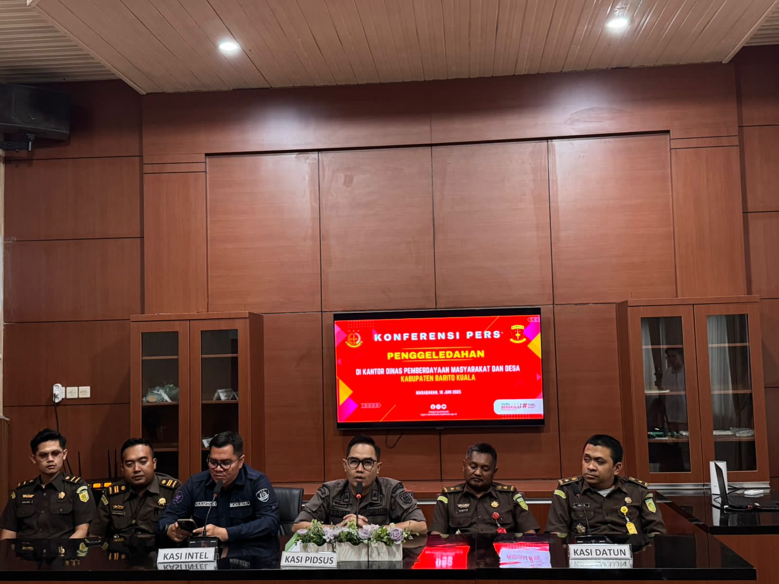 Penggeledahan yang dilakukan Tim Jaksa Penyidik Bidang Tindak Pidana Khusus pada Kejaksaan Negeri Kabupaten Barito Kuala terhadap Kantor Dinas Pemberdayaan Masyarakat Dan Desa (DPMD) Batola pada Rabu (18/6/2025).