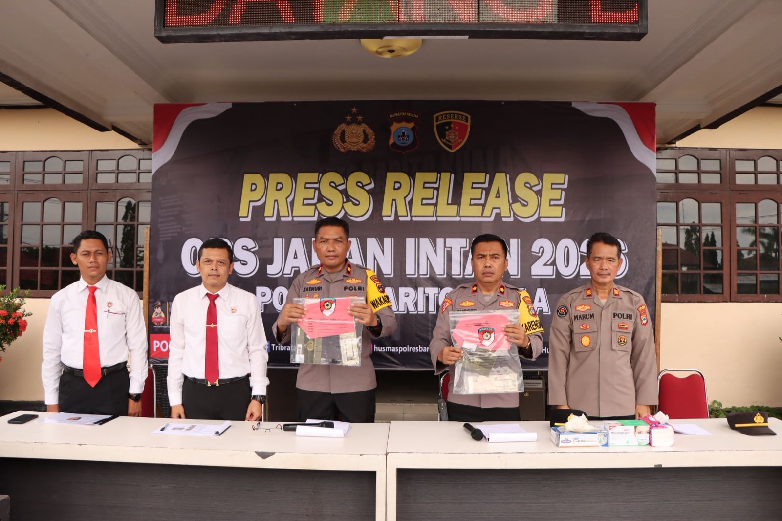 Wakapolres Batola Kompol Zaenuri, S.H., dalam konferensi pers di ruang lobi Mapolres Batola, Senin (9/2/2026) menyatakan, tiga orang pelaku telah berhasil ditangkap. Ketiganya berinisial YN, GT, dan AG, yang merupakan warga Kabupaten Kapuas, Kalimantan Tengah.