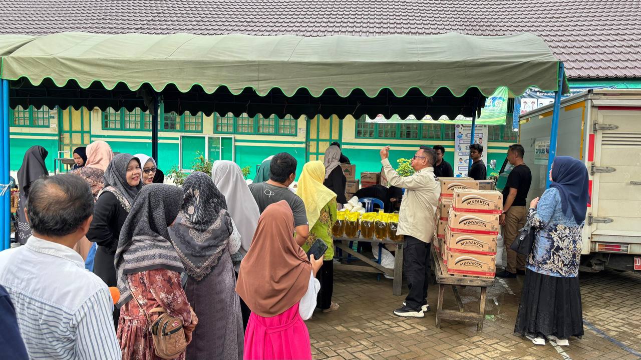 Terlihat dari pagi hari antusiasme warga sangat tinggi untuk membeli bahan pokok pada pasar murah di halaman SD Muhammadiyah Pandulangan, Kabupaten Hulu Sungai Utara (HSU), Minggu (23/11/2025).