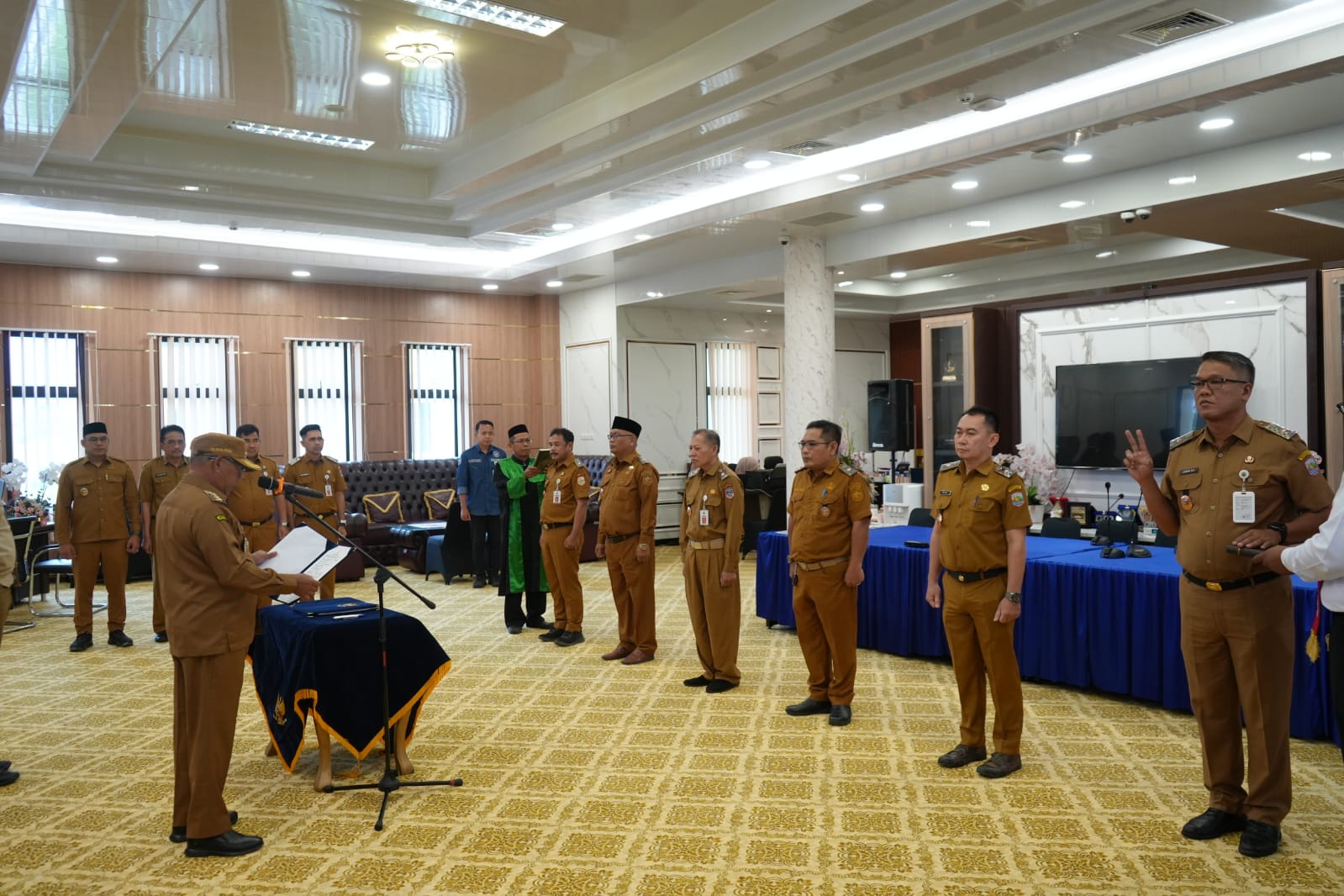 Kegiatan diawali dengan pembacaan Surat Keputusan Bupati Kotabaru tentang pengangkatan dan mutasi pejabat pimpinan tinggi pratama. Selanjutnya Bupati memimpin pengambilan sumpah dan janji jabatan yang dipandu oleh rohaniawan.