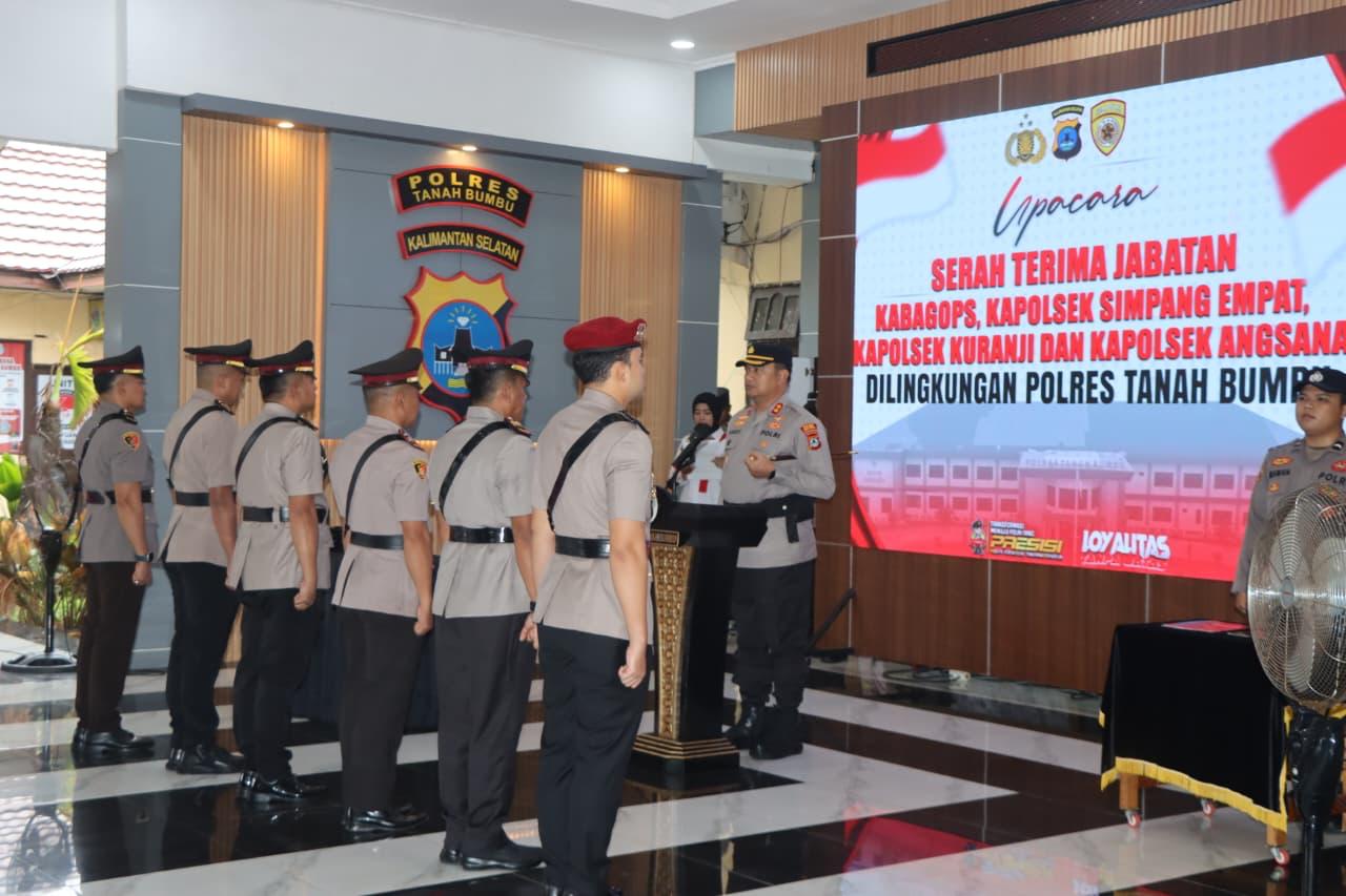KabarKalimantan, Batulicin – Kapolres Tanah Bumbu AKBP Arief Prasetya, S.I.K., M.Med.Kom., memimpin langsung upacara serah terima jabatan (sertijab) sejumlah pejabat utama dan Kapolsek jajaran di lingkup Polres Tanah Bumbu, yang dilaksanakan di Pendopo Gajah Mada, Polres Tanah Bumbu, Kamis (29/1/2026).